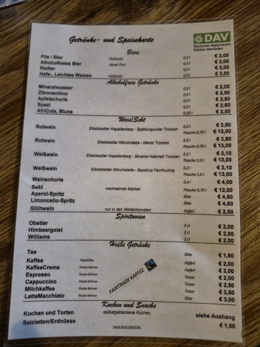 Bärenlochhütte Menu
